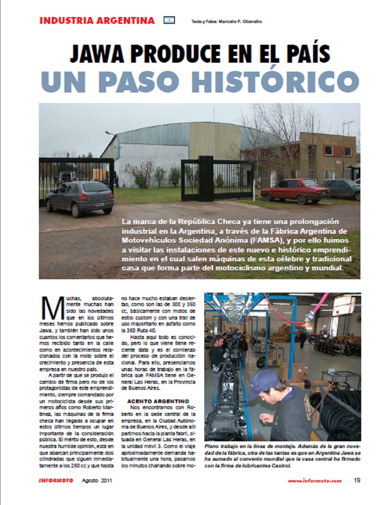 2011: Este año marca un antes y después en la historia de JAWA, debido a que por primera vez las motocicletas JAWA comienzan a ensamblarse en Argentina.