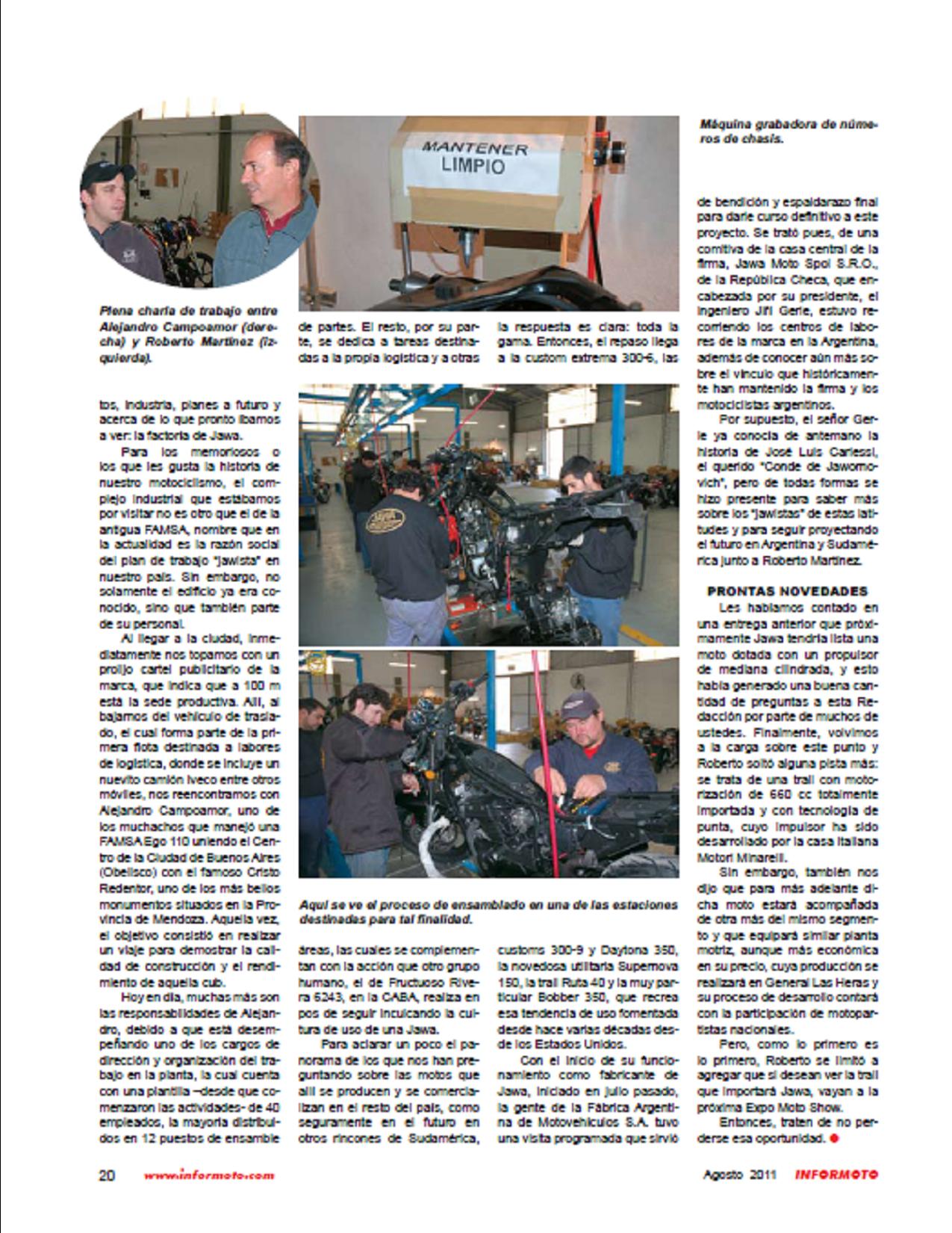 Roberto Martínez adquiere la totalidad del paquete accionario de la compañía F.A.M.S.A (fabrica Argentina de Moto vehículos Sociedad Anónima) con planta industrial en la localidad de las Heras Provincia de Buenos Aires, en donde a partir del mes de Julio del 2011 se comienzan a ensamblar los modelos Ruta 40, Daytona, 350-9, 350-6 y BOBBER 350.